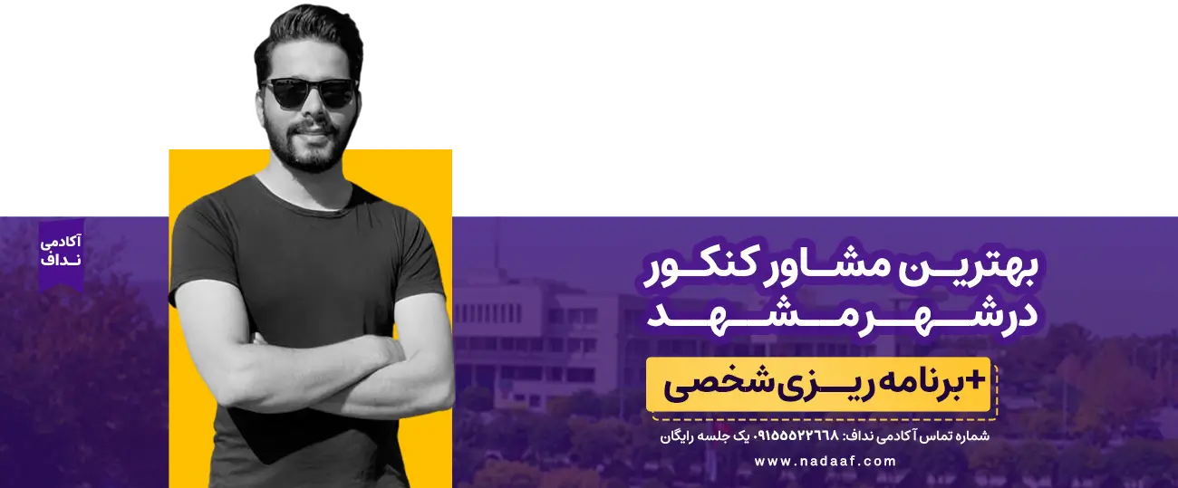 در آکادمی نداف می‌توانید روی من حساب کنید: از مشاوره کنکور رایگان در مشهد تا برنامه‌ریزی شخصی، و از مشاوره کنکور در مشهد تا رسیدن به فرصت‌های بین‌المللی، همراه شما هستم. هدف ما این است که در هر مرحله از مسیر، بهترین خودتان را به دنیا نشان دهید و با اعتماد کامل مسیر موفقیت را طی کنید. حتی اگر دنبال مشاوره کنکور مشهد باشید، ما بهترین تیم و تجربه را در کنار شما داریم.